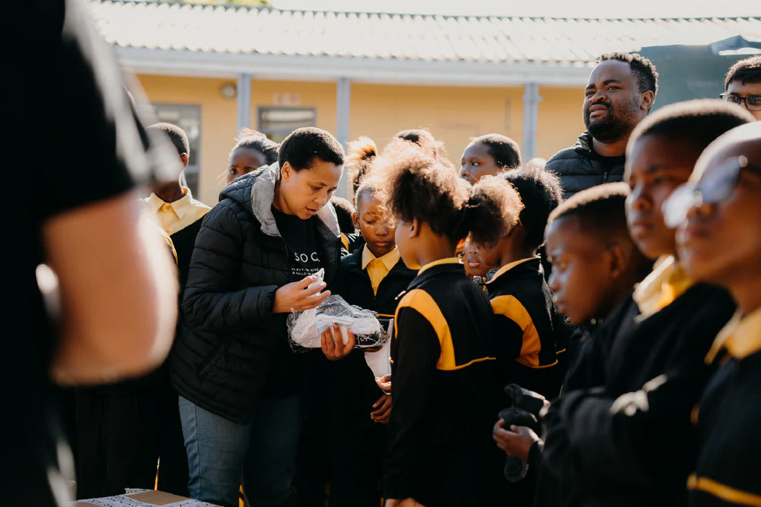 Through our sock drops, we don't just deliver school socks; we aim to inspire. We use these moments to show students that business can be a force for good with the message that small acts can have a big impact.
