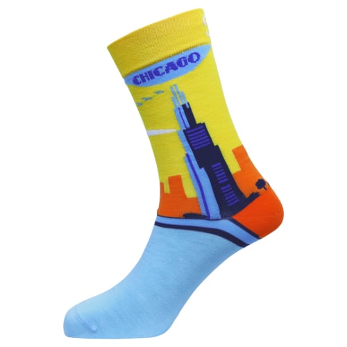 Bring the Windy City to your wardrobe with these vibrant socks featuring Chicago’s iconic skyline and the Willis Tower standing tall against a golden sky. Whether you’re a proud local, or just love the city’s bold character, these socks are your perfect souvenir-meets-style statement. Crafted from luxuriously soft bamboo fibres, they’re breathable, hypoallergenic, and naturally antibacterial. With built-in anti-odour comfort, these socks are as hardworking and full of character as Chicago itself. Plus, for every pair sold we give a pair of school socks to children in need.