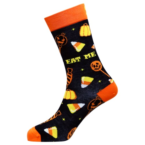 Sweet tooth approved! These playful Halloween socks are sprinkled with candy corn, lollipops, and pumpkins, topped off with a cheeky “Eat Me” slogan that’s perfect for spooky season fun. Whether you’re trick-or-treating, hosting a party, or just sneaking candy from the bowl, they’ll add a bold pop of festive flair to your outfit. Made from soft, breathable bamboo fibres, they’re hypoallergenic, antibacterial, and anti-odour, keeping your feet fresh and comfy long after the sugar rush fades. Each pair purchased also helps us donate school socks to children in need.