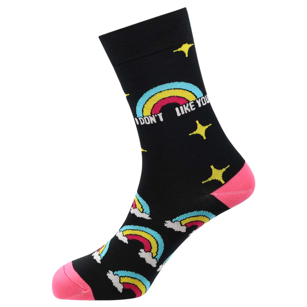 Say it with rainbows, and a touch of sass. These bold black socks are scattered with bright rainbows, yellow stars, and the unapologetically blunt message: “I Don’t Like You.” Perfect for days when you’d rather let your socks do the talking, they mix cheeky attitude with all-day comfort.