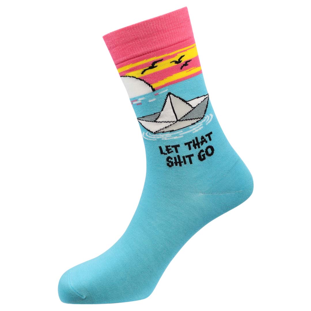 Your daily reminder in sock form to, 'Let That Sh*t Go'! These socks bring humor and mindfulness together with a paper boat floating in the sea, it serves as a reminder to not take things too seriously.