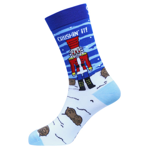Step into tradition with our Nut Cracker socks. Inspired by the beloved holiday classic, these socks are playful and comfy. Featuring the iconic soldier standing proud among scattered nuts, this playful design is perfect for anyone ready to tackle the festive season head-on.
