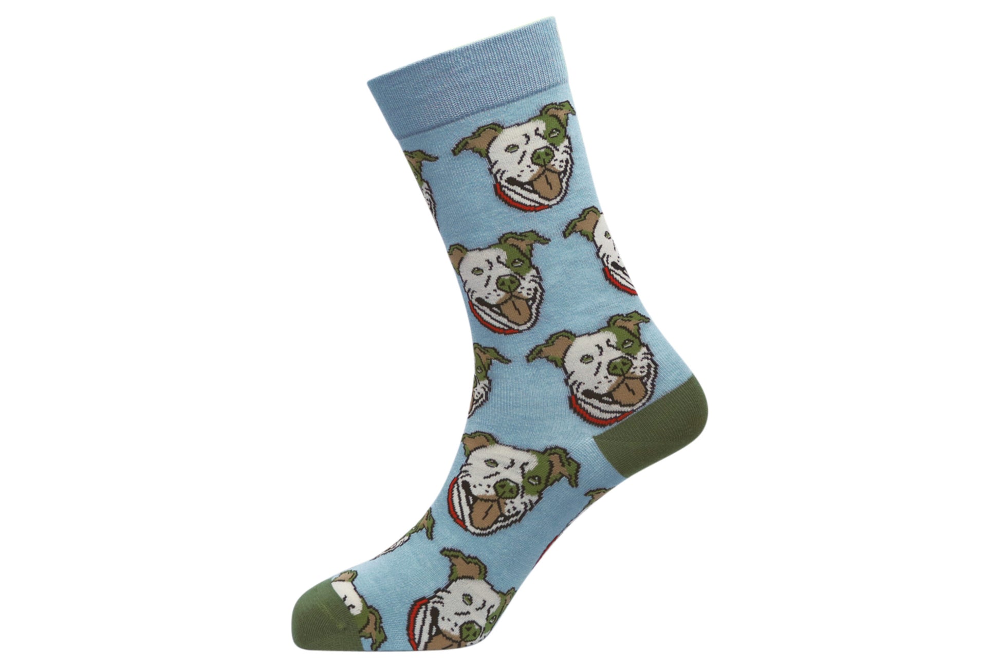 Celebrate the strength and spirit of man’s best friend with these bold pitbull socks. Featuring happy pitbull faces against a soft grey background, accented with earthy green toes and heels. Perfect for dog lovers, they’re a stylish nod to one of the most misunderstood yet lovable breeds. Crafted from breathable bamboo fibers, these socks are as tough on comfort as a pitbull is on loyalty. Naturally hypoallergenic and antibacterial, they keep odors away while the ultra-soft, moisture-wicking fabric ensures your feet stay fresh all day long. Plus, with every pair you buy, we donate school socks to a child in need.