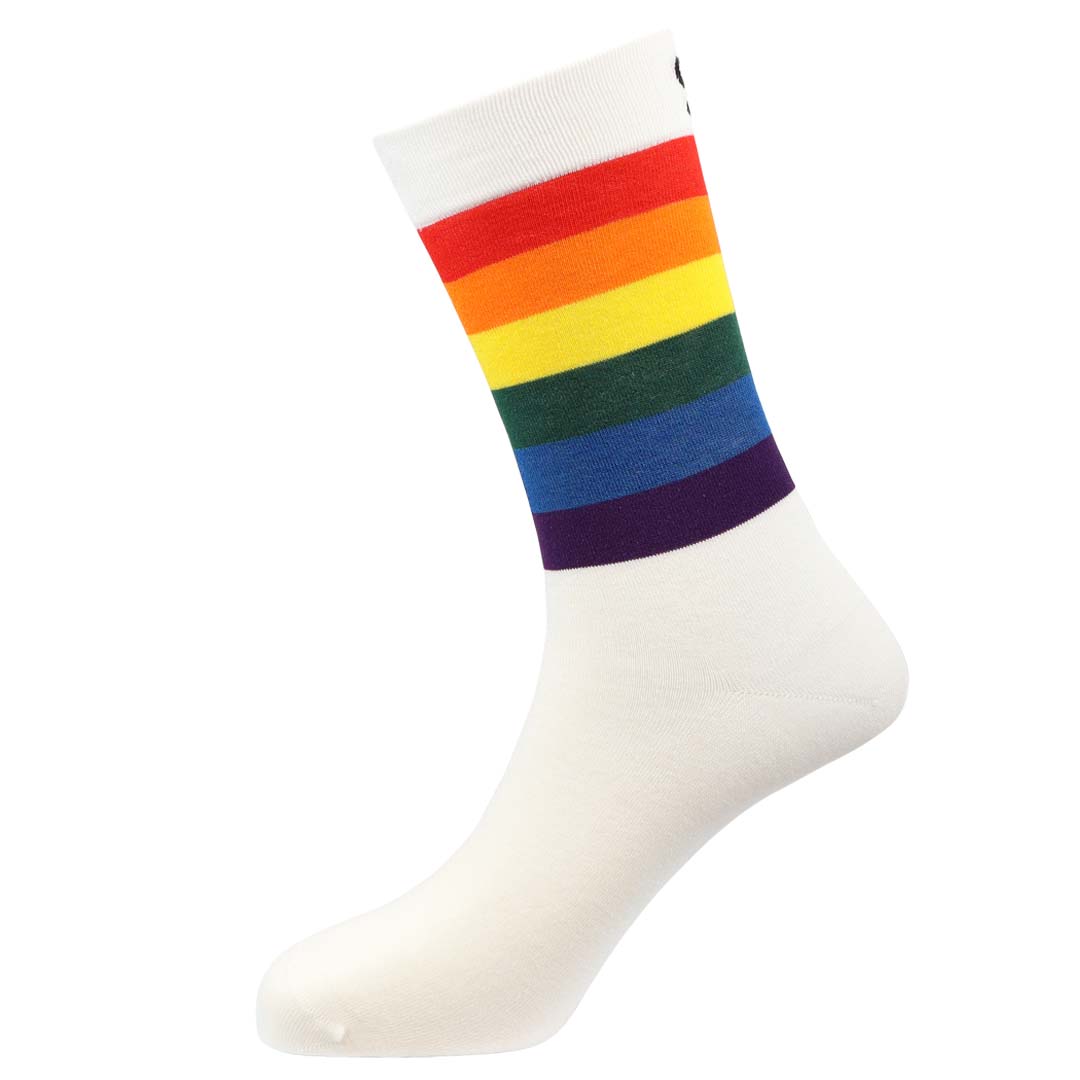 Wear your colors with pride. Our Pride socks showcase bold rainbow stripes across a clean white base, a celebration of love, equality, and unapologetic self-expression. These socks are a vibrant reminder that being yourself never goes out of style.