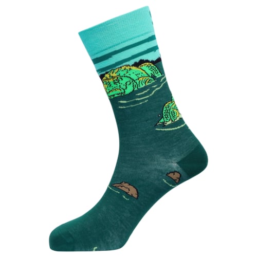 Lurk in style with these bold socks featuring a swampy scene complete with a gator ready to snap. The deep green waters, setting sun, and toothy grin make them perfect for thrill-seekers or wildlife fan. Crafted from buttery-soft bamboo fibres, they’re breathable and hypoallergenic for all-day comfort. Naturally antibacterial and anti-odour, they’ll keep your feet fresh whether you’re out exploring or just kicking back at home. Each pair purchased also helps us donate school socks to children in need.